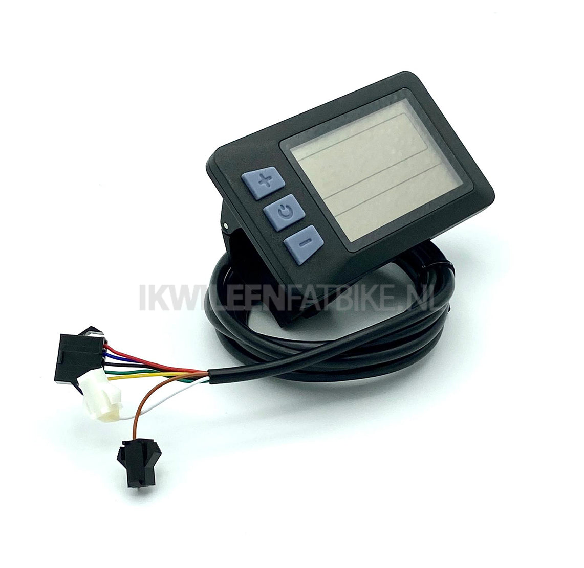 OUXI display met lange kabel. Het display is bestand tegen alle weersinvloeden, en tevens makkelijk te bedienen door de naastgelegen toetsen op het scherm.